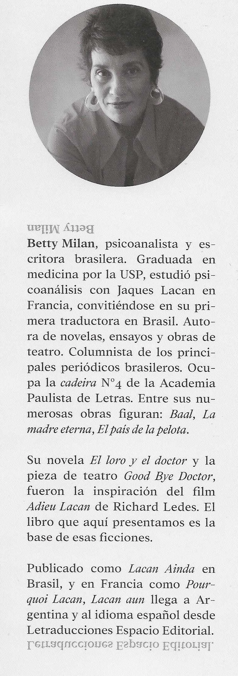 Con un lenguaje cercano al lector, Betty Milán nos narra desde su análisis con Lacan las vicisitudes de habitar la lengua materna y la extranjera, articulando la traducción como un posible fin de análisis. Una maravillosa obra que nos desliza por los intersticios intraducibles de lalangue.